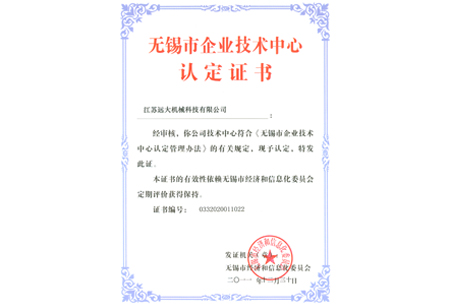 無錫市企業(yè)技術(shù)中心認(rèn)定證書